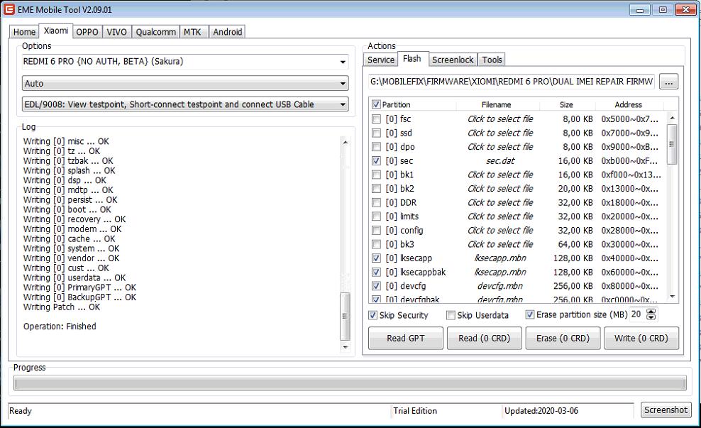 EMT-REDMI 6 PRO_ARB1 (SAKURA, MIUI10.0.1.0, 8.1.0) Flash without Authentication