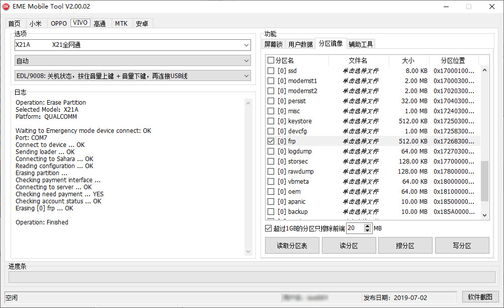 | EMT-VIVO X21A (PD1728, 8.0.1) 移除FRP锁 |