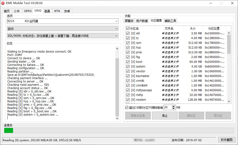 | EMT-VIVO X20 (PD1709) 读分区 |